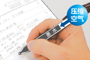 ●使用压缩空气挤出墨水的加压圆珠笔即使在顶面或湿纸上也可以清楚书写