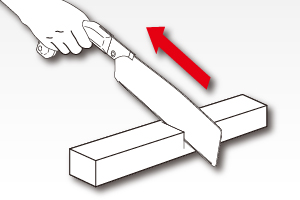 对刃尖进行更进一步的高频淬火处理,硬度为1000Hv以上,和锉刀相比有惊人的硬度。而且得到了坚韧优质的材料组织。对刃尖施加了这种惊人的冲击淬火,所以田岛拉锯实现了优良的耐久性,可以长久切割