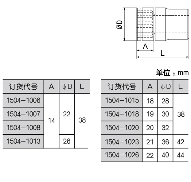 | 1/2" 22mm | 1504-1018 | TU-A22 | 90g | 简装 | 120支 (10支入×12) | 6921371710180 |